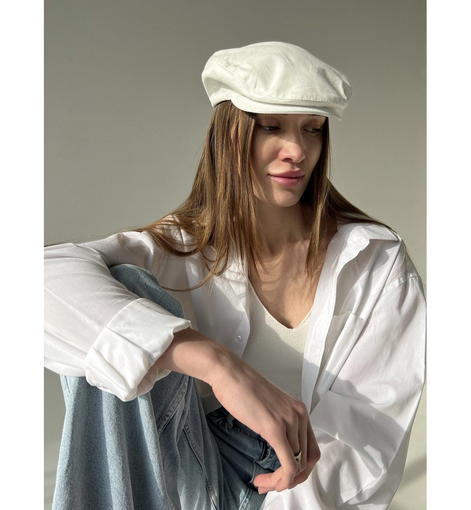 This flat cap features a soft cream tone with a clean, understated finish, inspired by timeless vintage silhouettes and gentle everyday styling. The light neutral color brings a calm, airy feel that pairs effortlessly with a wide range of outfits.