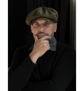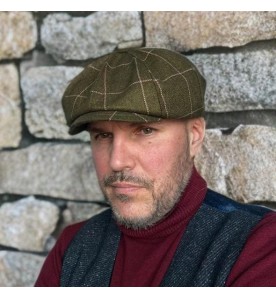 This flat cap features a refined olive check pattern with subtle contrast lines, inspired by traditional heritage style and timeless everyday wear. The earthy tone brings warmth and depth while remaining understated and easy to style.