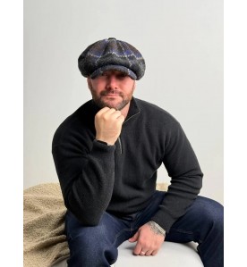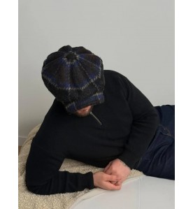 This newsboy-style cap features a deep navy-toned check pattern with subtle contrast lines, inspired by classic heritage style and timeless everyday wear. The dark color palette adds depth and refinement while remaining versatile and easy to style.