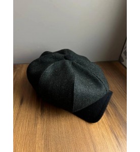 This newsboy-style cap features a subtle black herringbone texture, inspired by classic heritage design and timeless everyday wear. The tonal weave adds quiet depth and character while maintaining a clean, understated appearance.